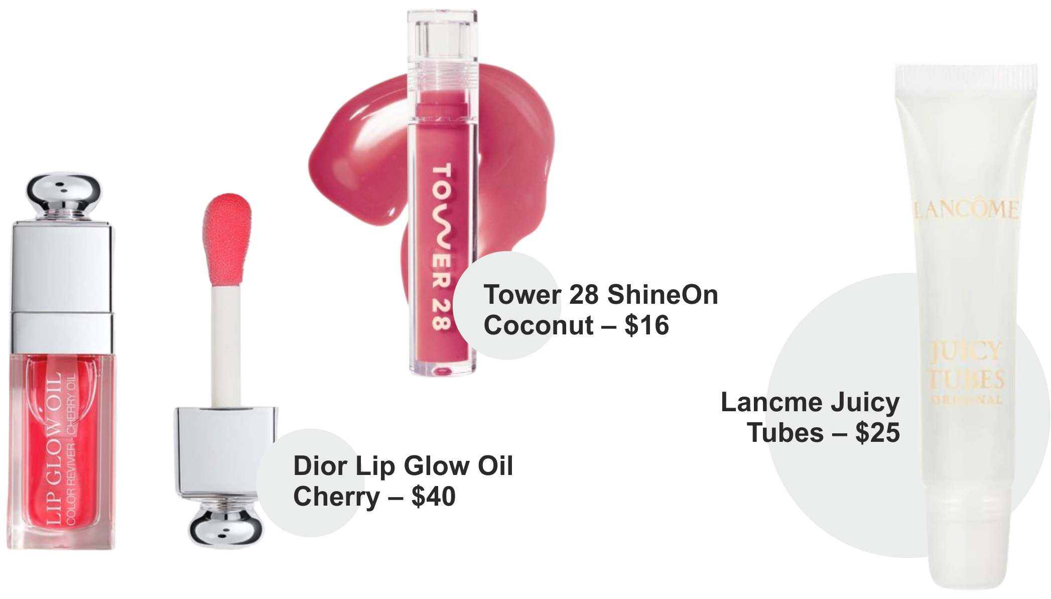 Universal Favorite: Lip oils and vinyl textures for all skin tones.